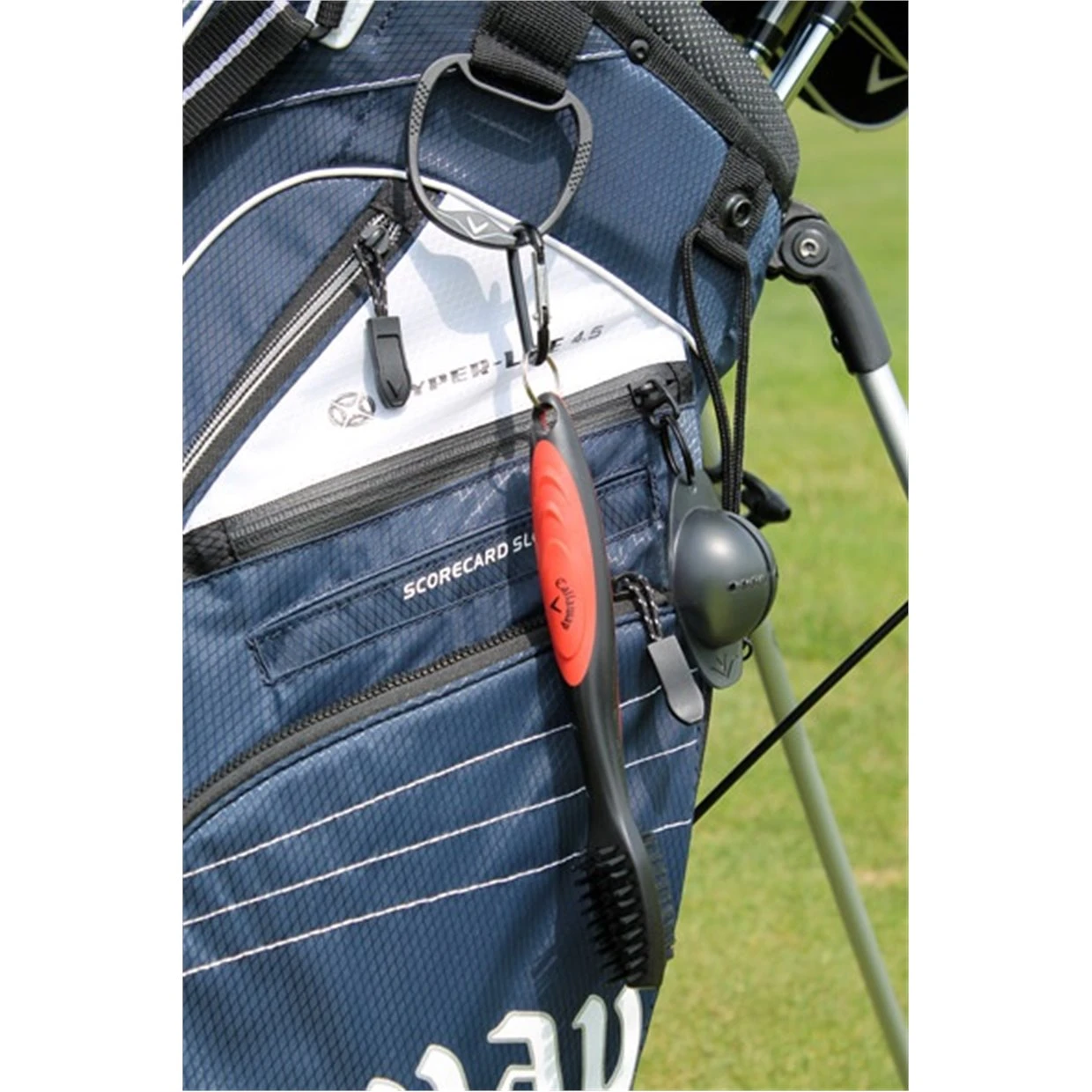 - Includes carabiner for clipping Callaway golf brush to golf bag