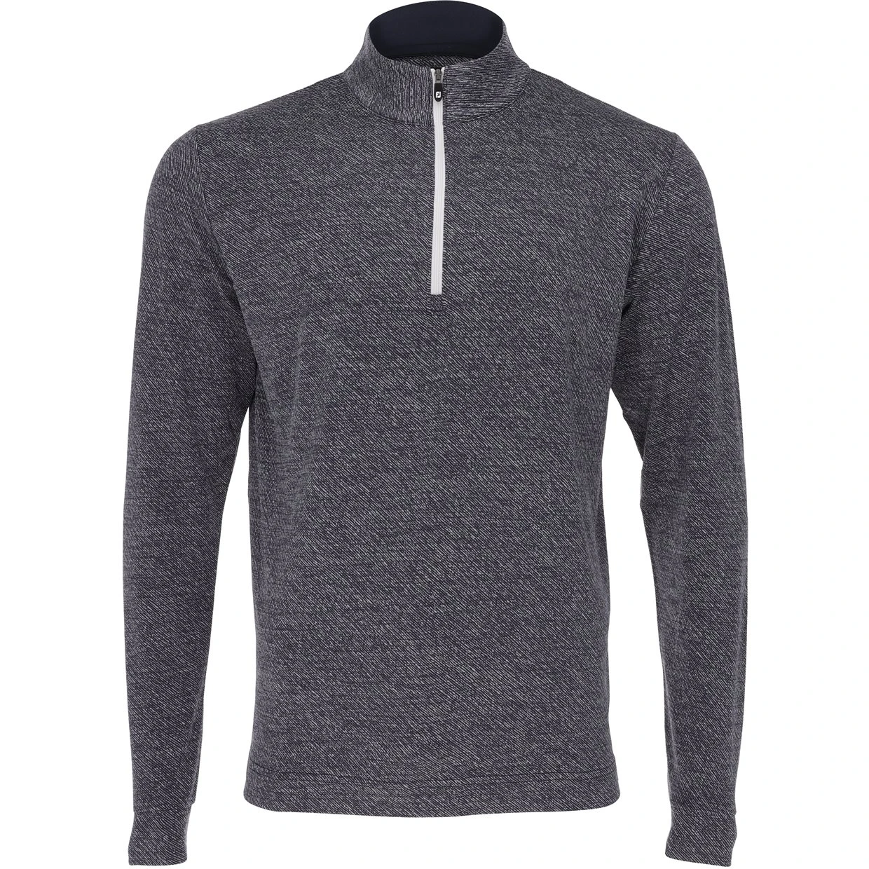 Stay warm in the FootJoy Jacquard Texture Midlayer. The pullover style features quarter zip closure for easy on and off wear. It also features a raised collar for additional coverage, fitted sleeve ends to help keep out the cold, and a jacquard textured finish for a final touch.