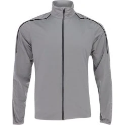 A full-zip windproof jacket in extremely soft and stretchy fabric. Distinctive piping details make it very presentable to be worn both on and off the course.