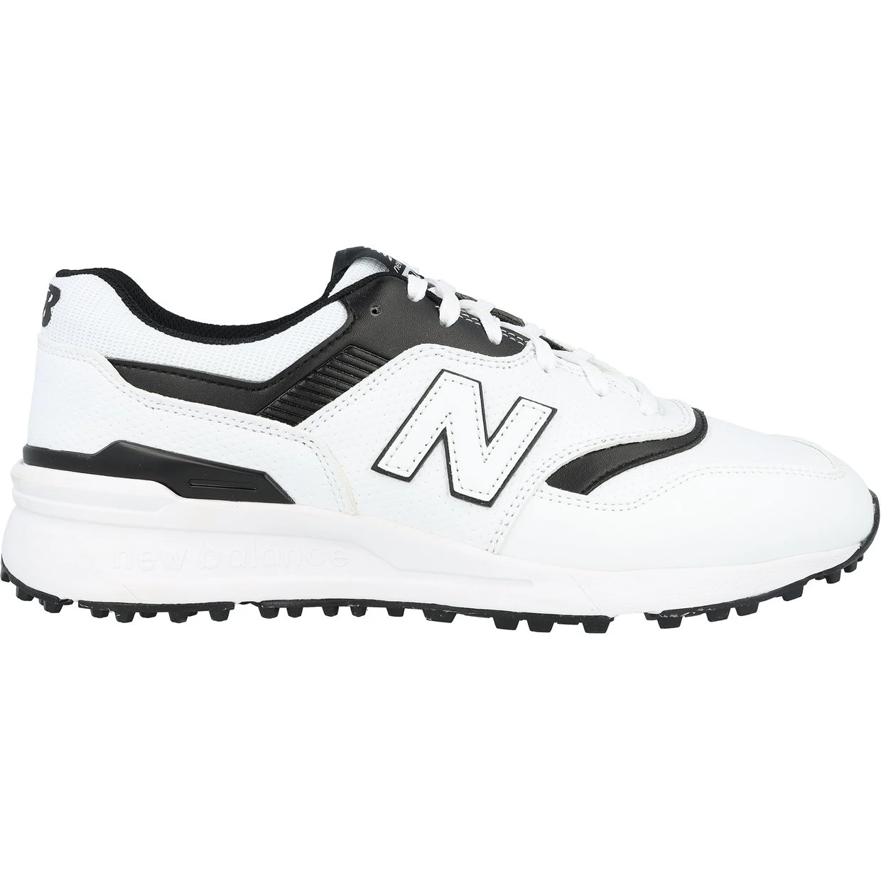 The New Balance 997 SL combines the look of a sneaker with the performance of a golf shoe. The spikeless construction is on and off course friendly while the NDurance outsole features flexible rubber that moves with the natural motion of your foot. The Abzorb 10mm drop midsole provides cushioning for responsiveness and a lightweight feel. Inner comfort is offered with a CUSH+ insole. The upper is constructed with waterproof microfiber leather. A 2 year waterproof warranty is included.