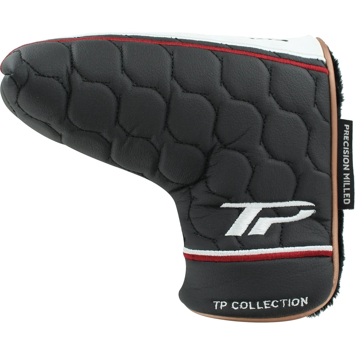 This TaylorMade TP Black Copper Collection Blade Headcover is in Slightly Worn overall condition, but has been used. There are no rips, tears, or significant stains.